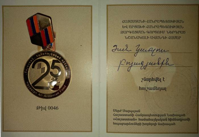 Reconhecimento Serviços Prestados ao Governo da Armênia e Artsakh
